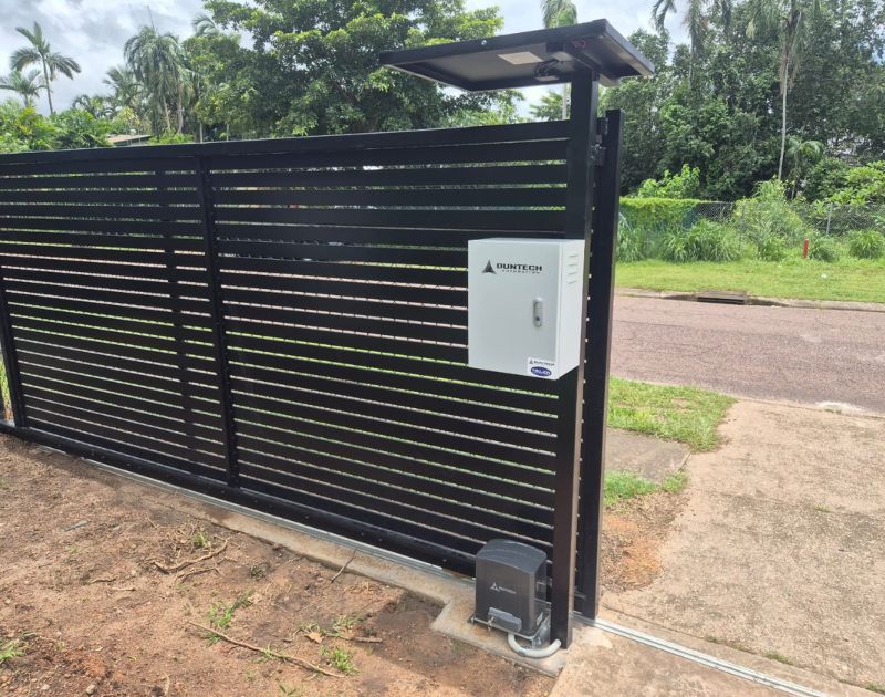Solar-powered gate motors maintain operation when mains power fails—common during Territory storm season. Properly sized solar systems with LiFePO4 batteries provide at least a week or more of normal operation without mains power or adequate sunlight. Compared to lead acid batteries that might last up to a week.