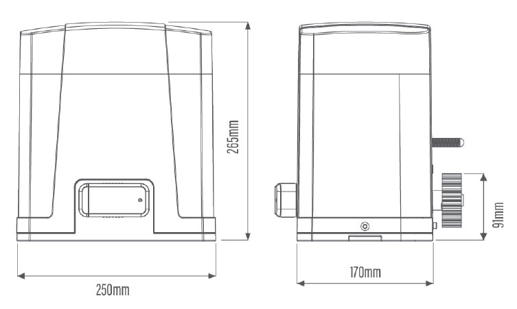 Here are the operating dimensions for the Duntech Automation swinging gate motor, DW50024/230.